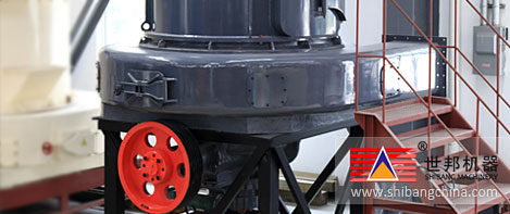 主(zhu)機(ji)工(gong)作(zuo)過(guo)程是電(dian)動(dong)機(ji)通(tong)過(guo)一副三角(jiao)帶(dai)輪帶(dai)動(dong)橫(heng)向(xiang)傳(chuan)動(dong)軸(zhou)(zhou)轉(zhuan)(zhuan)動(dong),橫(heng)向(xiang)傳(chuan)動(dong)軸(zhou)(zhou)再通(tong)過(guo)另一端(duan)(duan)的(de)(de)錐齒(chi)輪帶(dai)動(dong)主(zhu)機(ji)主(zhu)軸(zhou)(zhou),主(zhu)軸(zhou)(zhou)的(de)(de)上端(duan)(duan)連接著磨(mo)(mo)(mo)(mo)輥(gun)吊(diao)(diao)架(jia)(jia),磨(mo)(mo)(mo)(mo)輥(gun)裝(zhuang)置通(tong)過(guo)橫(heng)擔(dan)軸(zhou)(zhou)吊(diao)(diao)裝(zhuang)在磨(mo)(mo)(mo)(mo)輥(gun)吊(diao)(diao)架(jia)(jia)上并形成擺(bai)動(dong)支點,其(qi)不(bu)僅(jin)圍繞軸(zhou)(zhou)回轉(zhuan)(zhuan),同時在離心力的(de)(de)作(zuo)用(yong)下(xia)(xia)磨(mo)(mo)(mo)(mo)輥(gun)沿著磨(mo)(mo)(mo)(mo)環內圓滾(gun)動(dong),磨(mo)(mo)(mo)(mo)輥(gun)本身因摩擦作(zuo)用(yong)而(er)自(zi)轉(zhuan)(zhuan)。磨(mo)(mo)(mo)(mo)輥(gun)吊(diao)(diao)架(jia)(jia)下(xia)(xia)端(duan)(duan)裝(zhuang)有(you)鏟(chan)(chan)(chan)(chan)刀(dao)(dao)架(jia)(jia),鏟(chan)(chan)(chan)(chan)刀(dao)(dao)架(jia)(jia)的(de)(de)下(xia)(xia)法蘭上裝(zhuang)有(you)傾斜(xie)的(de)(de)鏟(chan)(chan)(chan)(chan)刀(dao)(dao),鏟(chan)(chan)(chan)(chan)刀(dao)(dao)的(de)(de)前端(duan)(duan)接近磨(mo)(mo)(mo)(mo)室襯板,后端(duan)(duan)位于磨(mo)(mo)(mo)(mo)輥(gun)與磨(mo)(mo)(mo)(mo)環形成的(de)(de)楔形間隙(xi)內,鏟(chan)(chan)(chan)(chan)刀(dao)(dao)與磨(mo)(mo)(mo)(mo)輥(gun)同轉(zhuan)(zhuan)過(guo)程中把物料(liao)鏟(chan)(chan)(chan)(chan)拋喂入磨(mo)(mo)(mo)(mo)輥(gun)磨(mo)(mo)(mo)(mo)環之間而(er)被擠壓、碾碎。從磨(mo)(mo)(mo)(mo)環底部(bu)進入磨(mo)(mo)(mo)(mo)腔的(de)(de)氣流將(jiang)小顆粒(li)粉(fen)料(liao)帶(dai)入選粉(fen)機(ji),由(you)此(ci)而(er)達到(dao)制(zhi)粉(fen)目的(de)(de)。