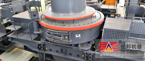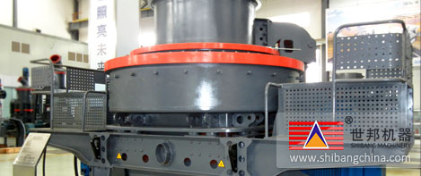 進料(liao)(liao)伴隨環(huan)狀瀑落進料(liao)(liao):物(wu)料(liao)(liao)落入(ru)進料(liao)(liao)斗,再(zai)經環(huan)形孔落下,被散(san)料(liao)(liao)盤(pan)分(fen)成兩股。一股經分(fen)料(liao)(liao)盤(pan)進入(ru)高(gao)速(su)旋轉(zhuan)的(de)(de)葉(xie)輪,另一股從分(fen)料(liao)(liao)盤(pan)的(de)(de)四周(zhou)落下,進入(ru)葉(xie)輪的(de)(de)物(wu)料(liao)(liao),在葉(xie)輪內被迅速(su)加(jia)速(su)后(hou)高(gao)速(su)拋出(chu),首先與散(san)料(liao)(liao)盤(pan)四周(zhou)自由落體(ti)的(de)(de)另一部(bu)(bu)分(fen)物(wu)料(liao)(liao)沖擊破碎(sui),然后(hou)一起沖擊到(dao)周(zhou)圍的(de)(de)渦(wo)(wo)流腔內的(de)(de)渦(wo)(wo)狀料(liao)(liao)襯上(或反擊塊上),先被反彈(dan)到(dao)破碎(sui)腔的(de)(de)頂部(bu)(bu),后(hou)偏(pian)轉(zhuan)向下運動,與從葉(xie)輪流道發射出(chu)來的(de)(de)物(wu)料(liao)(liao)撞擊形成連續(xu)的(de)(de)物(wu)料(liao)(liao)幕,經下部(bu)(bu)排(pai)料(liao)(liao)口(kou)排(pai)出(chu)。